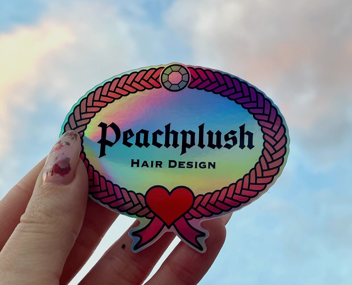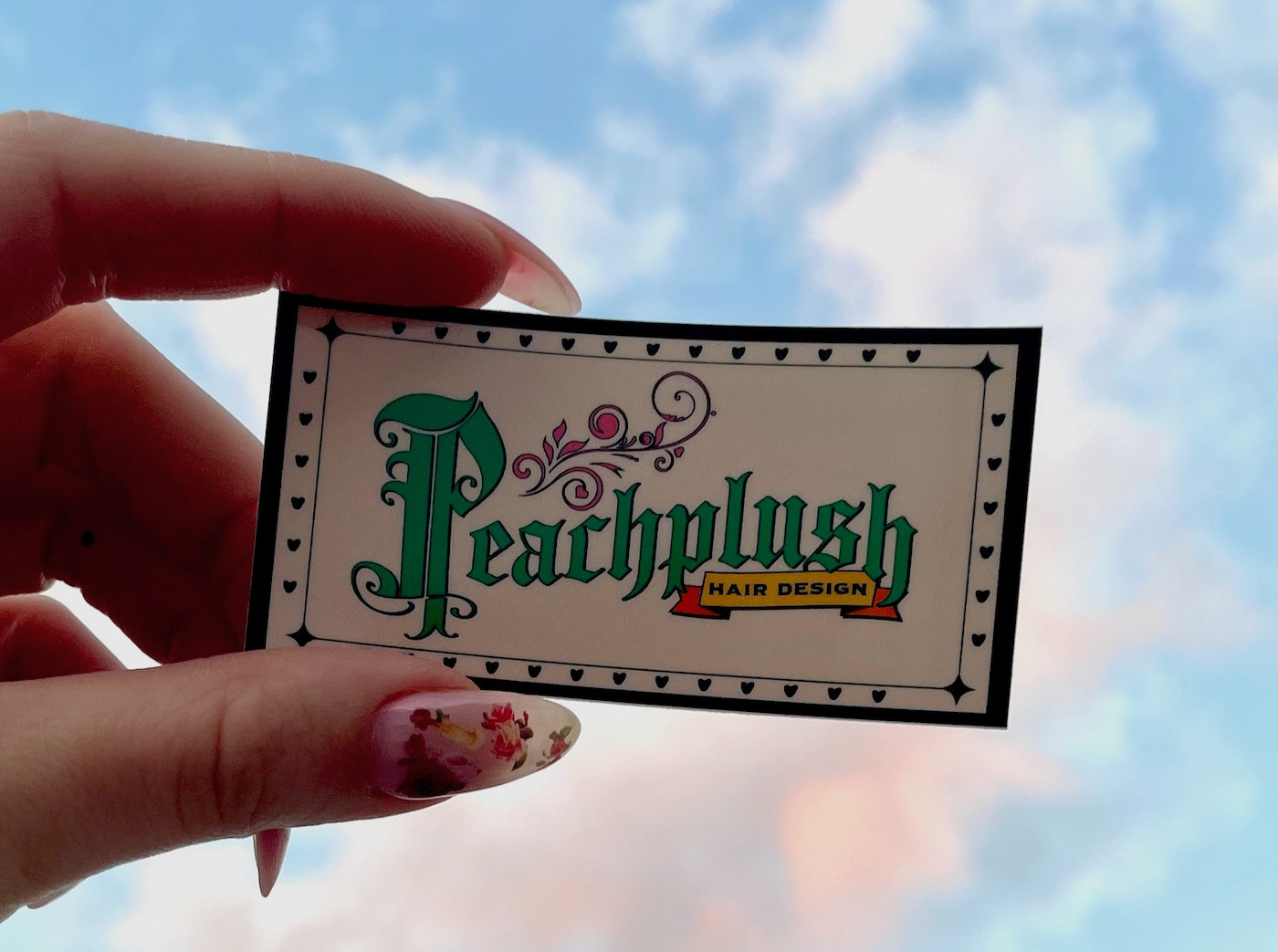 Brief: PeachPlush is a professional hair stylist in Las Vegas NV. Her focus is on creating colorful, dynamic hair. I was tasked with creating a brand identity and stickers that align with her vivid creations. After collaborating we decided to go with a bright, feminine medieval black-letter style visual identity.